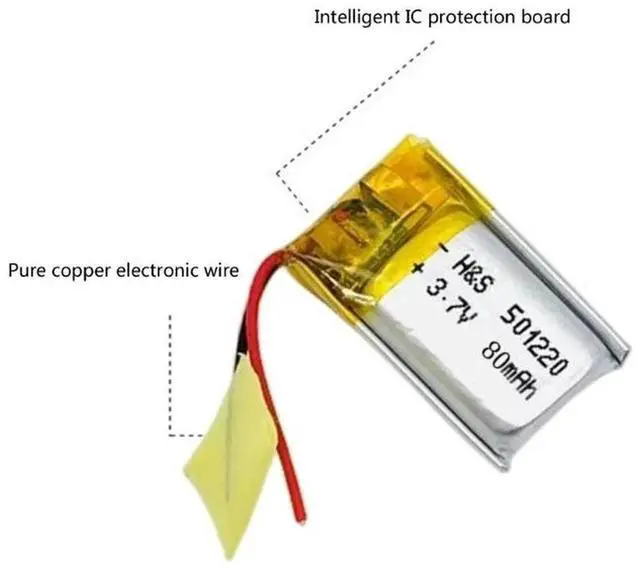 • 1Piece 3.7V 80mAh 501220 Rechargeable Lithium For Headsets 3D Glasses Sports Bracelets More Gadgets