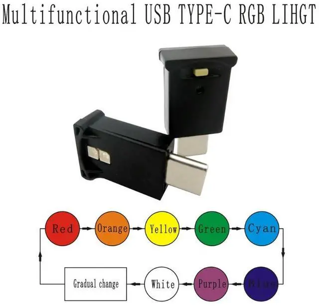 • Mini Type-C LED RGB Light Brightness Adjustable 8 Color Changeable Lamp Low-power RGB Multi-function High-bright