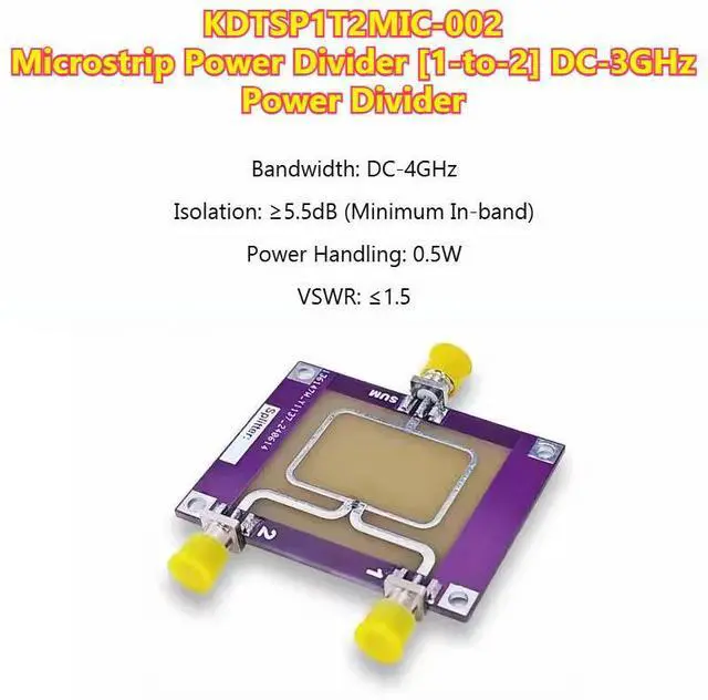 • KDTSP1T2MIC-002 DC-3GHz Power Divider Microstrip Power Divider Passive Power Divider RF Microwave Device 1 Minute 2DIY Test Kit