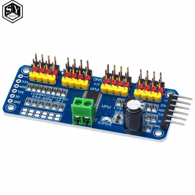 • 16-Channel 12-bit PWM/Servo Driver - I2C interface - PCA9685 for Raspberry Pi DIY Servo Shield Module