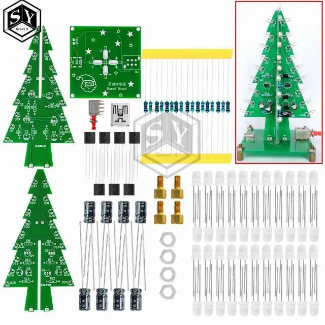 • 1PCS Three-Dimensional 3D Christmas Tree LED DIY Kit Red/Green/Yellow LED Flash Circuit Kit Electronic Fun Suite
