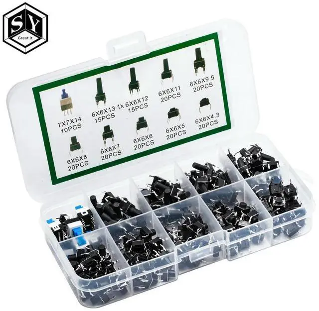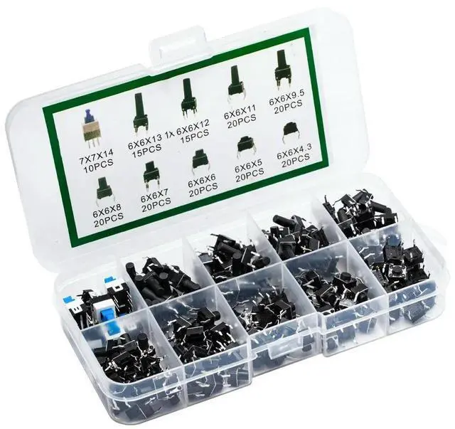 • 10 Values 180PCS Tactile Push Button Switch Mini Momentary Tact Assortment Kit DIY