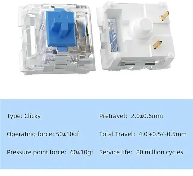 • Blue Switches,Dustproof And Waterproof, 50 Pieces Strong Tactile Feedback And Crisp Clicky Sound,For Mechanical Keyboards