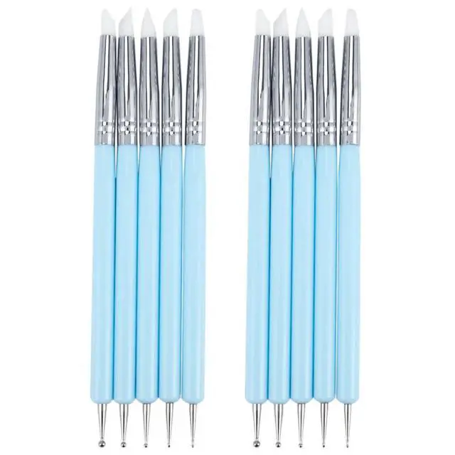 10 X 2 Way Ball Styluses Dotting Tool Silicone Color Shaper Brushes Pen For Polymer Clay Pottery Modeling Nail Art