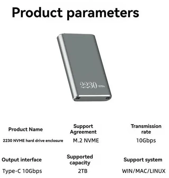 M. 2 Nvme SSD Enclosure-External Case-M. 2 Nvme SSD Case-Aluminum Type-C 3.2 Gen2 10Gbps For 2230 SSD