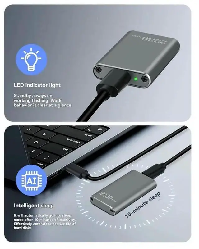 • M. 2 Nvme SSD Enclosure-External Case-M. 2 Nvme SSD Case-Aluminum Type-C 3.2 Gen2 10Gbps For 2230 SSD