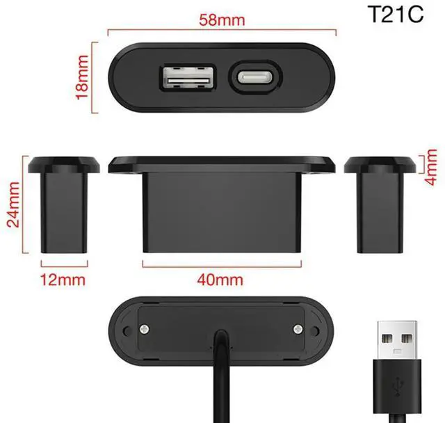 • 2X Desktop Embedded USB Socket Furniture Desk TYPE-C And USB Charging Plug Computer Desk Office Accessories