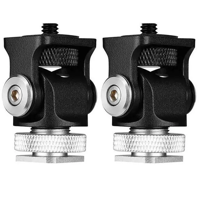 2X Mini Hot Shoe Mount Monitor Microphone Flash Holder 1/4 Inch Screw Camera Bracket Tripod Head