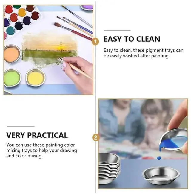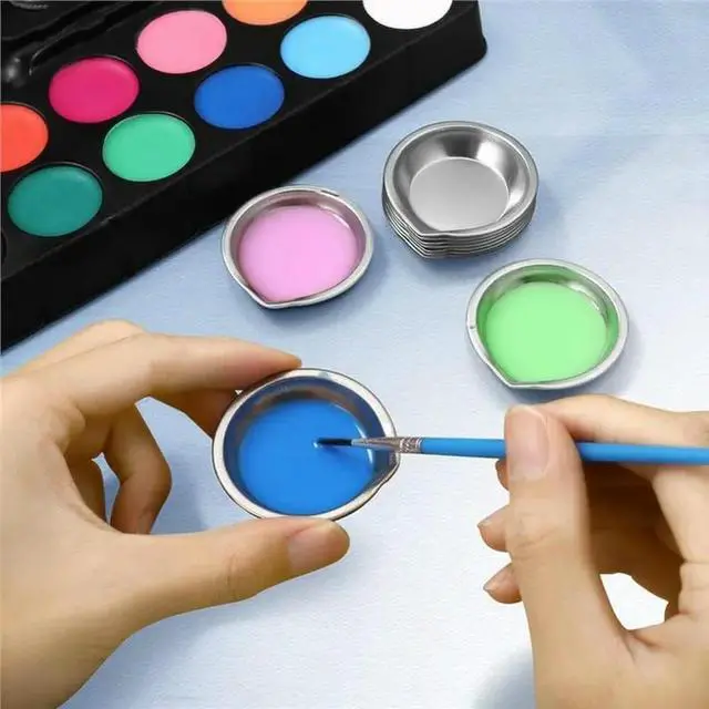 • 20Pcs Stainless Steel Small Round Paint Trays Makeup Mixing Palette Painting Palette