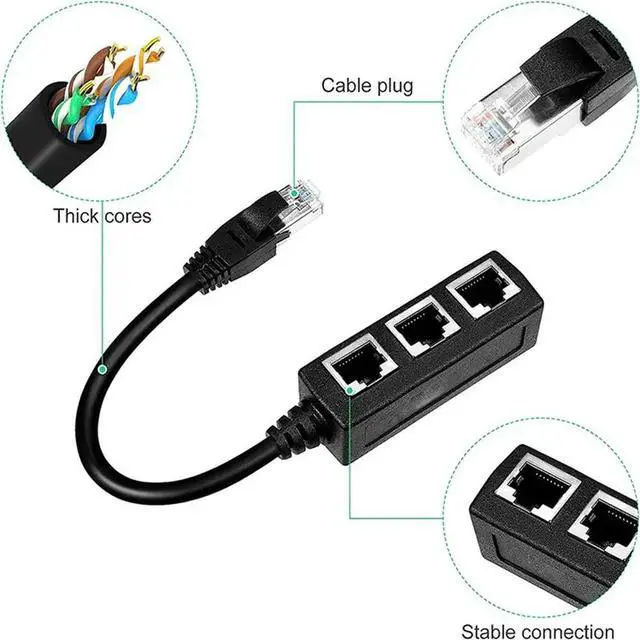 • Rj45 Ethernet Splitter Adapter For Home, Office, School Network Expansion Black 1 Piece