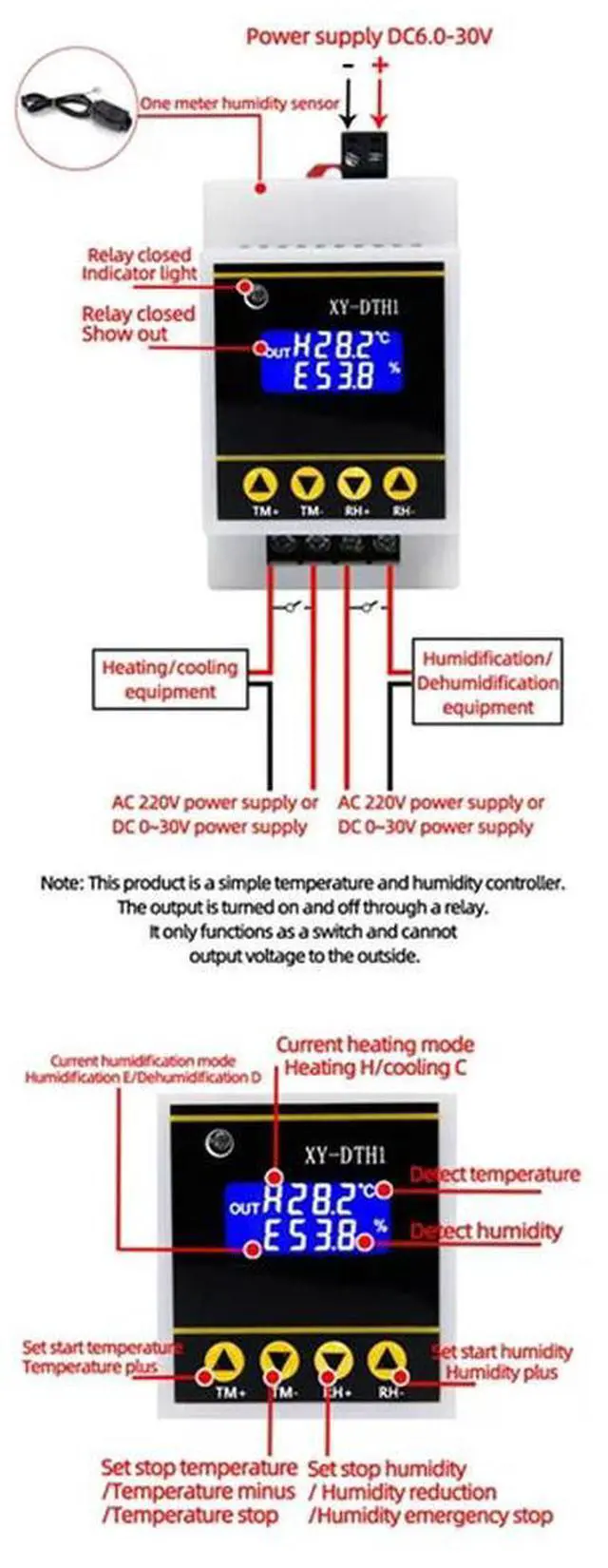 • DTH1 Dual-Output Digital Display Temperature And Humidity Control Module Automatic Constant Thermostat Board SHT3