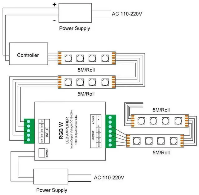 RGB/RGBW 5050 LED Strip Amplifier Controller Work With 4Pin/5Pin DC12V/DC24V 5050SMD LED Strip