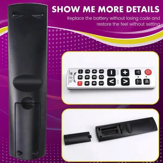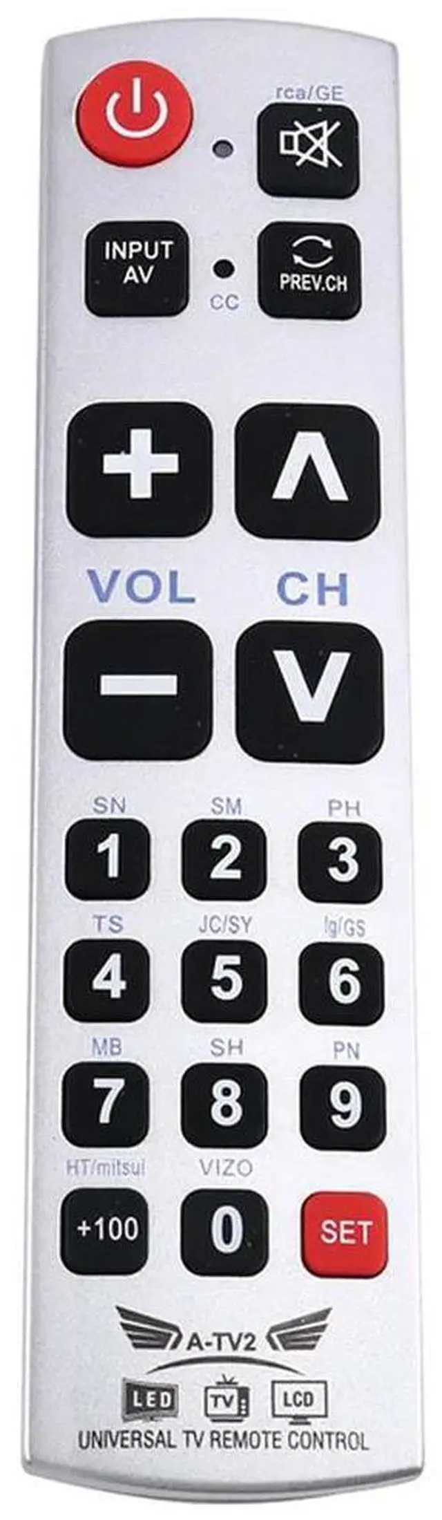 • Big Button Universal TV Remote Control A-TV2 TV LED LCD Remote Control Compatible For Galaxy Matrix Easy For Old People