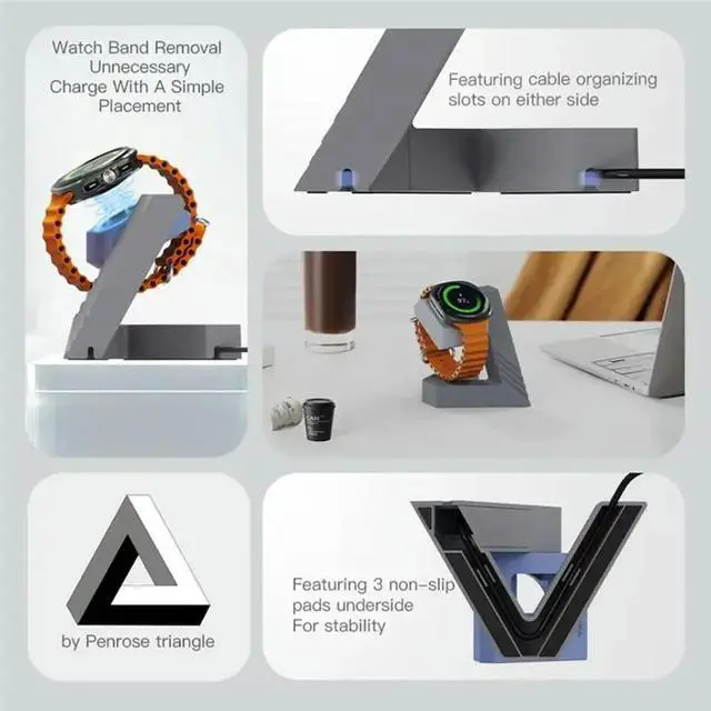 • Watch Charging Stand PC Geometric Design For Galaxy Watch Ultra/7/6/6 Classic/5/5 Pro Dock Base Blue
