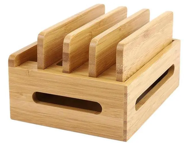 NNR-Mobile Phone Bracket Bamboo Wood Multi-Device Charging Station Organizer Office Flat Bracket
