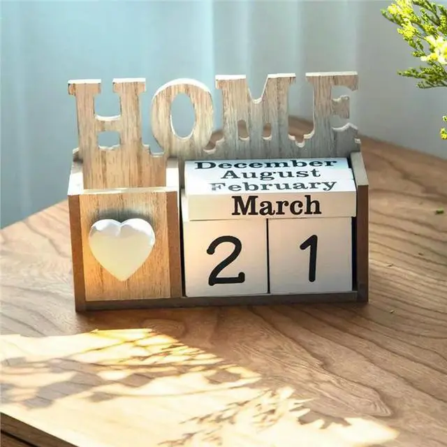 • For Home Perpetual Calendar Wooden Design With Pen Holder Block For Home Office Desk Organizer Decoration