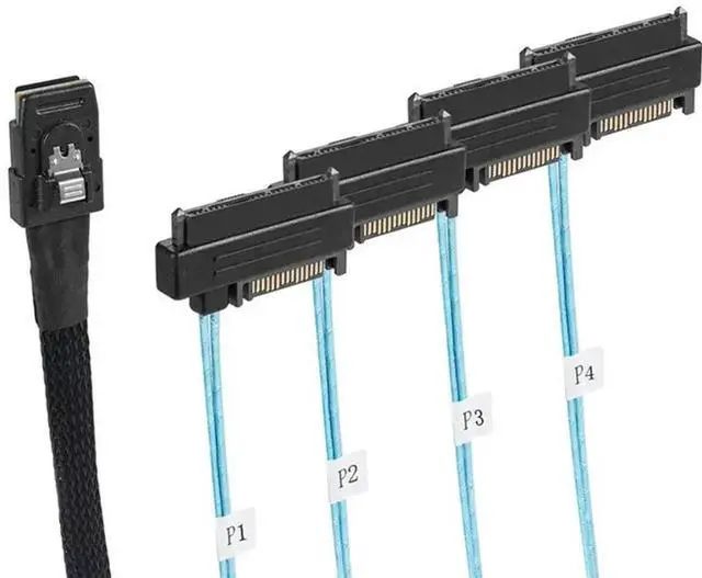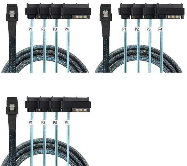 • 3X Mini Sas Sff-8087 To 4 Sff-8482 Server Array Card Hard Drive Data Cable Sata Power Cable 0.5M