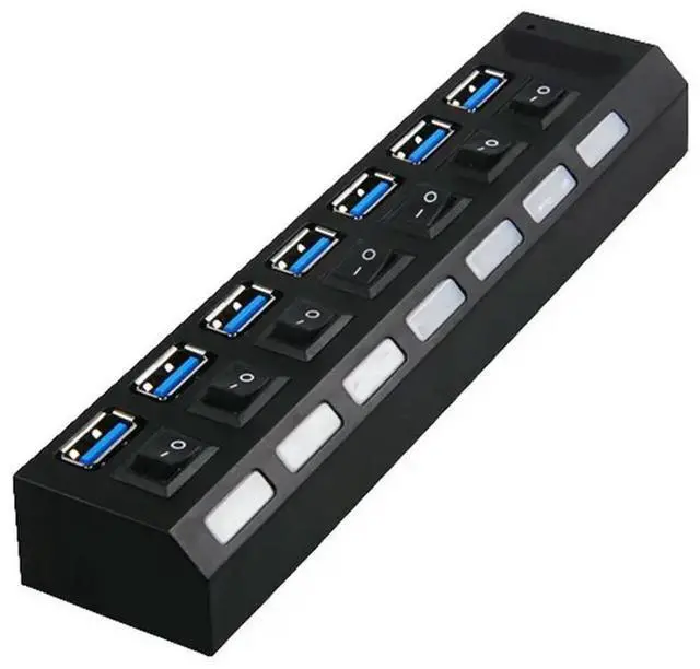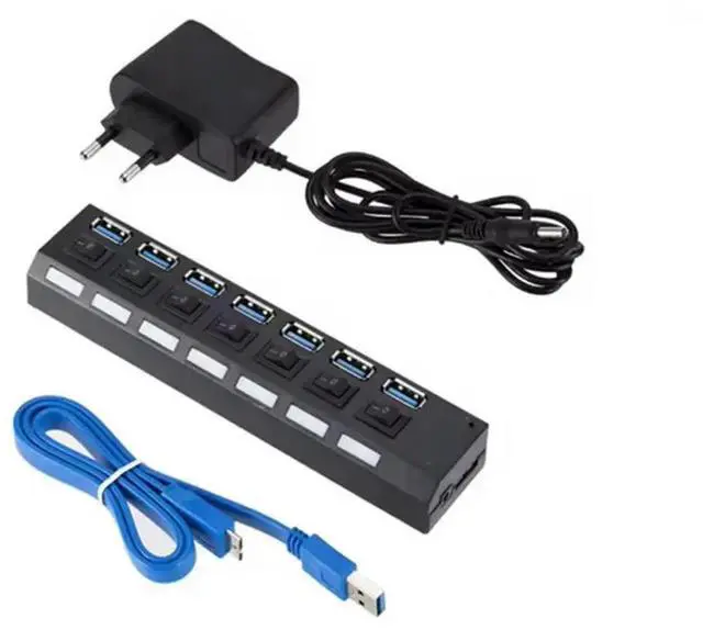 • 2X USB 3.0 Hub USB Hub USB Splitter Use Power Adapter 7 Port Multiple Expander 3.0 USB3 Hub With Switch For PC EU Plug