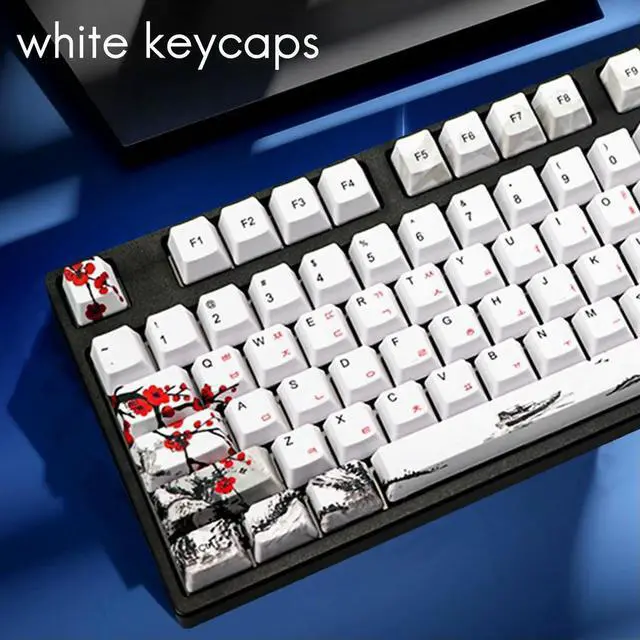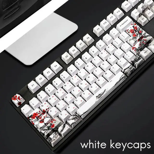 • 110 Keys PBT Keycap Dye-Sublimation Plum Blossom Profile Key Cap DIY Mechanical Keyboard Keycap Set