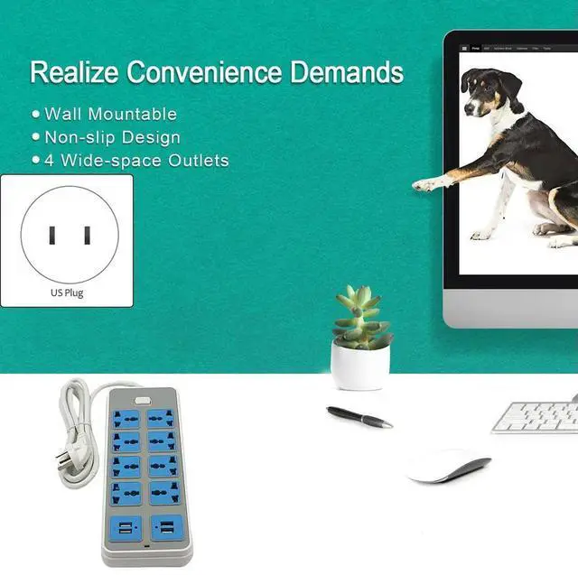 • Power Strip Surge Protector With 4 USB And 8 Outlets Ports 6.5 Feet Extension Cord 3000W For Home Dorm