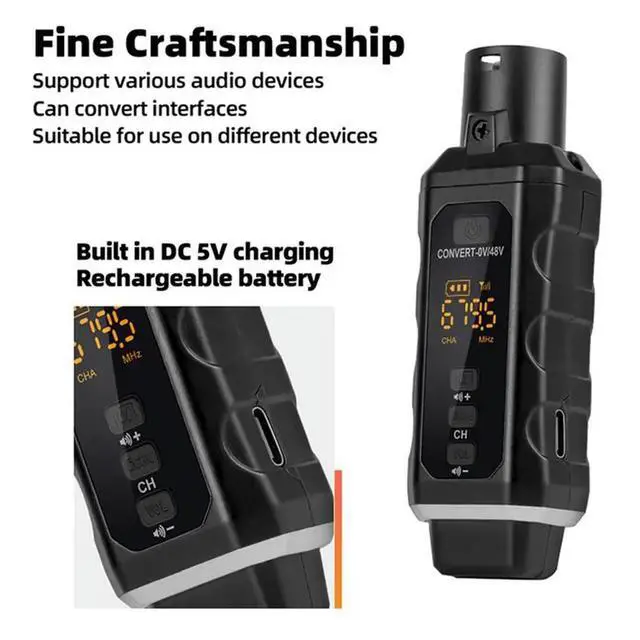 • 2X UHF XLR Adapter System Microphone Transmitter Receiver System For Dynamic Microphone Guitar Audio Mixer