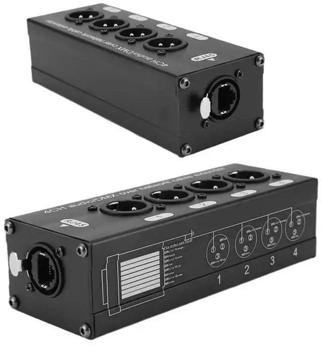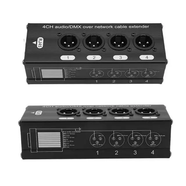 • 1Pair 4-Channel 3-Pin XLR Audio And DMX Over Network Cable Extender DMX512 Network Signal Extender 1 Male+1 Female Black