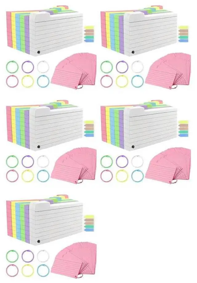 • 1500 Pack Index Cards, 3Inch X 5Inch Ruled Index Cards With Ring, Colored Lined Flash Cards, Both Sides Note Cards