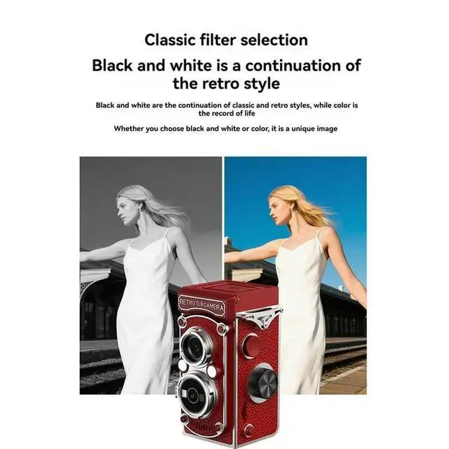 • Retro Mini Digital Camera Vintage Style 5MP 1080P FHD Video Recording Dual Lens With Built-In Flash For Vloggers