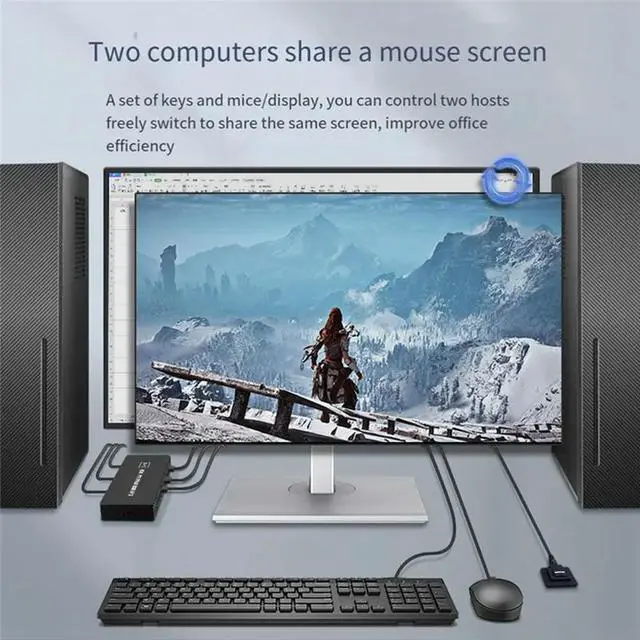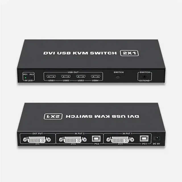 • DVI KVM Switch 2-In-1 4K Two Computers Shared USB Keyboard Mouse Print Monitor Multi-Function Switching Screen