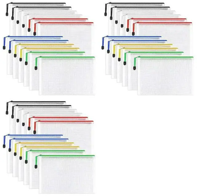 • 36Pcs A4 Zip Folders Mesh Zipper Pouch Document Bag, Plastic Zip File Folders, Letter Size/A4 Size For Office Supplies