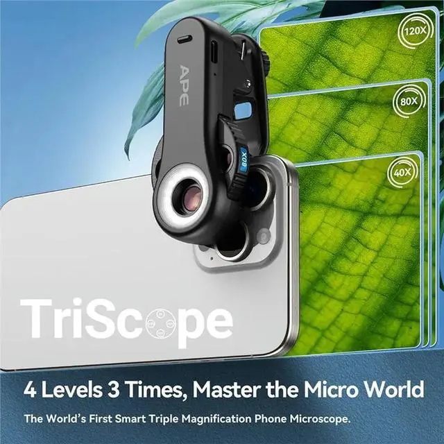• 40X/80X/120X Microscope Triscope Lens All In 1 Jewelry Lens With LED Lights/Universal Clip For /Android phone