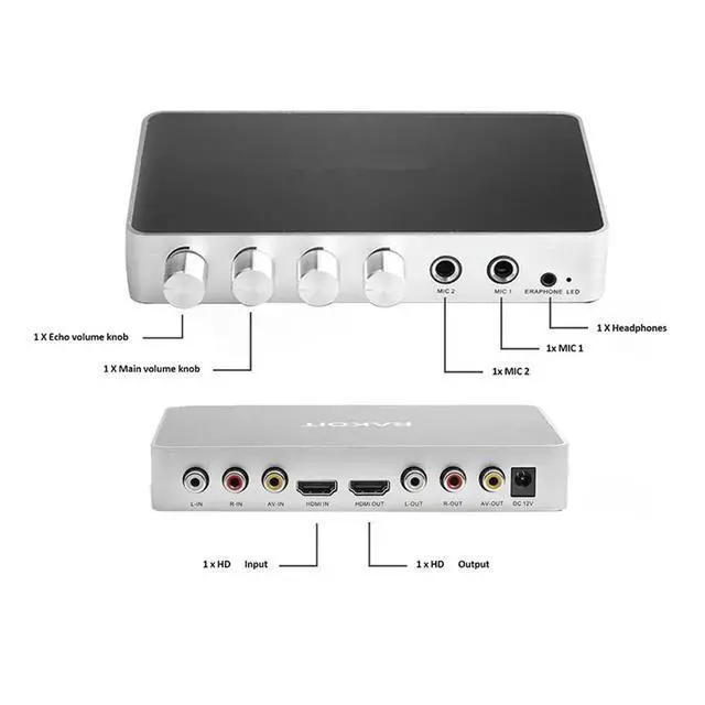 • KM200 4K Mini HD Karaoke Sound Mixer Karaoke Audio Mixer Microphone Input Volume Adjustment For Stage KTV Room-US Plug