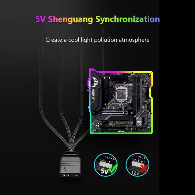 Broad compatibility. The standard 5V ARGB interface is compatible with various light-emitting products with the standard universal 5V 3-pin A RGB interface on the market, so there is no need to worry about compatibility issues.