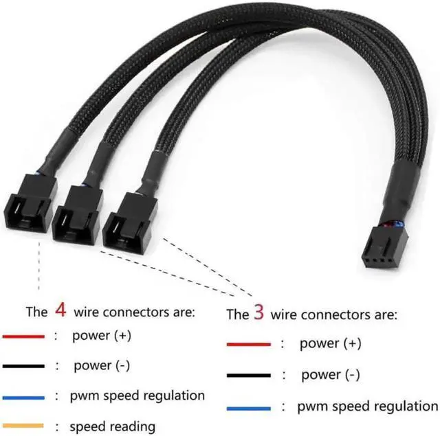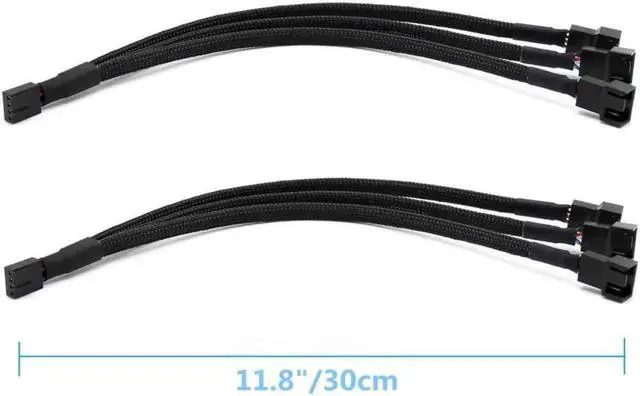 PWM Fan Extension Cable-PC Fan Extension Cable Compatible with ATX Case 3 Pin & 4 Pin Cooling Fans. Durable, Black Nylon Braided Case Fan Extension Fan accessory, 30cm/ 11.8 inches extension cables. The 4-pin connectors are compatible with both 3-pin and 4-pin PWM fans, Excellent 4 pin PWM fan power supply extension cable for PC computer atx case internal motherboard fans, make you easier diy PC computer case. If you need more length, the pwm fan cable extensions can be daisy chained together to meet your needs 3 PIN AND 4 PIN COMPATIBLE Each extension cable supports PWM function and speed regulation with a 4-pin female and 4-pin male port, which can also be used for 3-pin cpu fans SLEEK, DURABLE CONSTRUCTION Each pwm cable extension cord is sleeved in flexible and sturdy braided black nylon to provide long-lasting performance as well as to avoid dust and breakage, the cables are ideal for creating PC builds with neat, focused aesthetics.