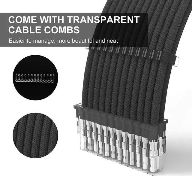 Premium PET Sleeved PSU CablesWoven with PET material, more heat-resistant than cotton mesh, will not cause heat shrinkage, PET fiber is also more robust, maintaining better durability while the color is more vibrant, a wide range of colours to match each and customise the chassis.