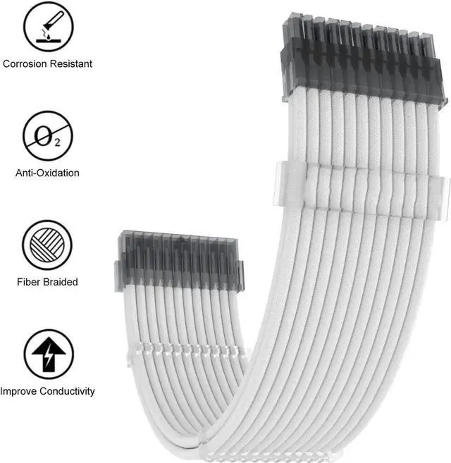 • Excellent StabilityHigh specification 18 AWG cable core,adopt thicker tinned copper,can keep the voltage stable,and will not heat up even through high current,easily handle your ultra high power computer power supply(800W-1600W).