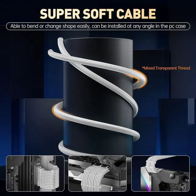 Upgraded 16AWG Cabling Experience superior power delivery with our white PC cable extension kit. It uses UL1015 16AWG wire, with higher copper content for higher current output. This upgrade eliminates overheating issues, ensuring smooth performance even with high-power devices. Compatible with popular power supplies like RM, RMX, and HX series, this kit is your go-to for reliable power.