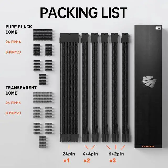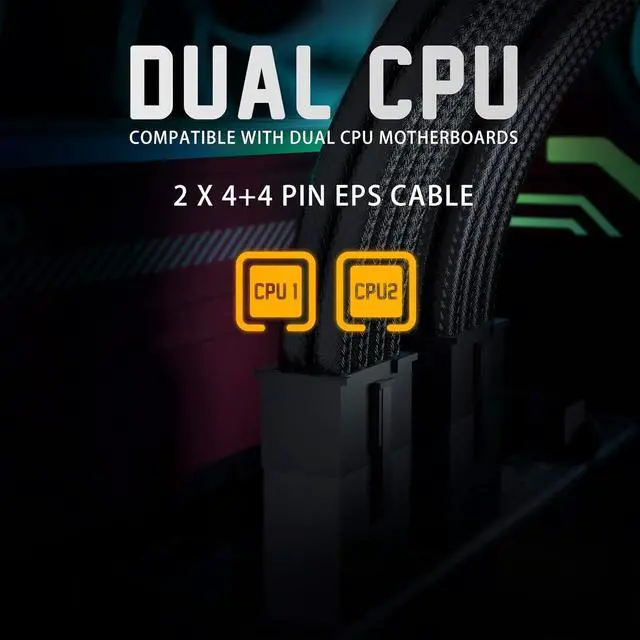 Supports Dual CPU Motherboards Unlock extreme performance with the Asiahorse RGB power supply extension kit! It includes 1 x 24-pin ATX extension cable, 2 x 4+4-pin EPS cables, and 3 x 8-pin to 6+2-pin PCI-E cables, each with 4 combs for neat cable management. Plus, get 2 dual 4+4-pin CPU power cables bundled together. Perfect for dual CPU motherboards and dual-path overclocking, this kit delivers the power you need for top-tier performance. Upgrade your build today!