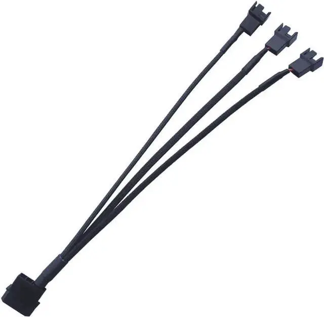 12V Molex to 2x 3pin / 4pin Fan Splitter Cable with Black Sleeved Jacket