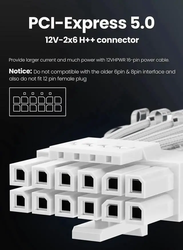 [Notice Before Shopping]To order a correct 12VHPWR power cable for your PSU and GPU, please make sure your PSU has the 12VHPWR ports. And we recommend you had better confirm the RTX 5090 5080 5070 5070Ti 4090 4080 3090ti 4070Ti GPU's requirement of the output wattage of PSU. This 12VHPWR GPU power cable is suitable for Full modular PSU only, not for semi-modular / non-modular power supplies.