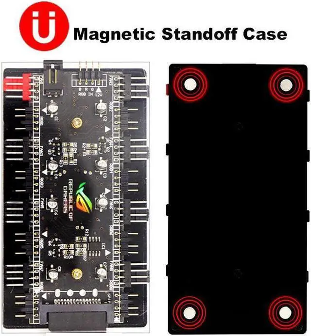 Magnetic standoff design for easily fixing the hub in steel & iron chassis. But, Can not fix the hub in any plastic / aluminum chassis