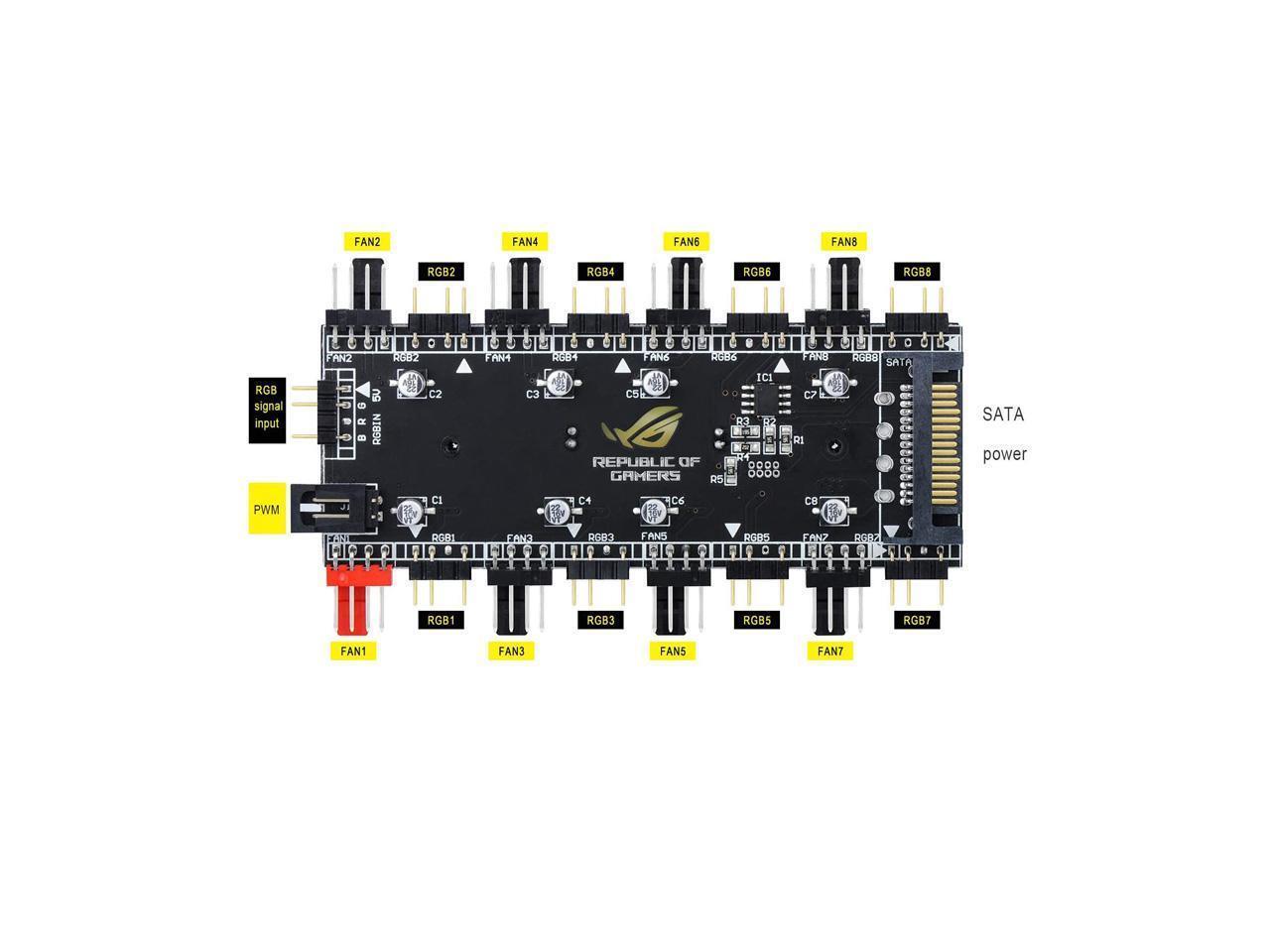 - ARGB & PWM 2-in-1 8 Way Controller Hub