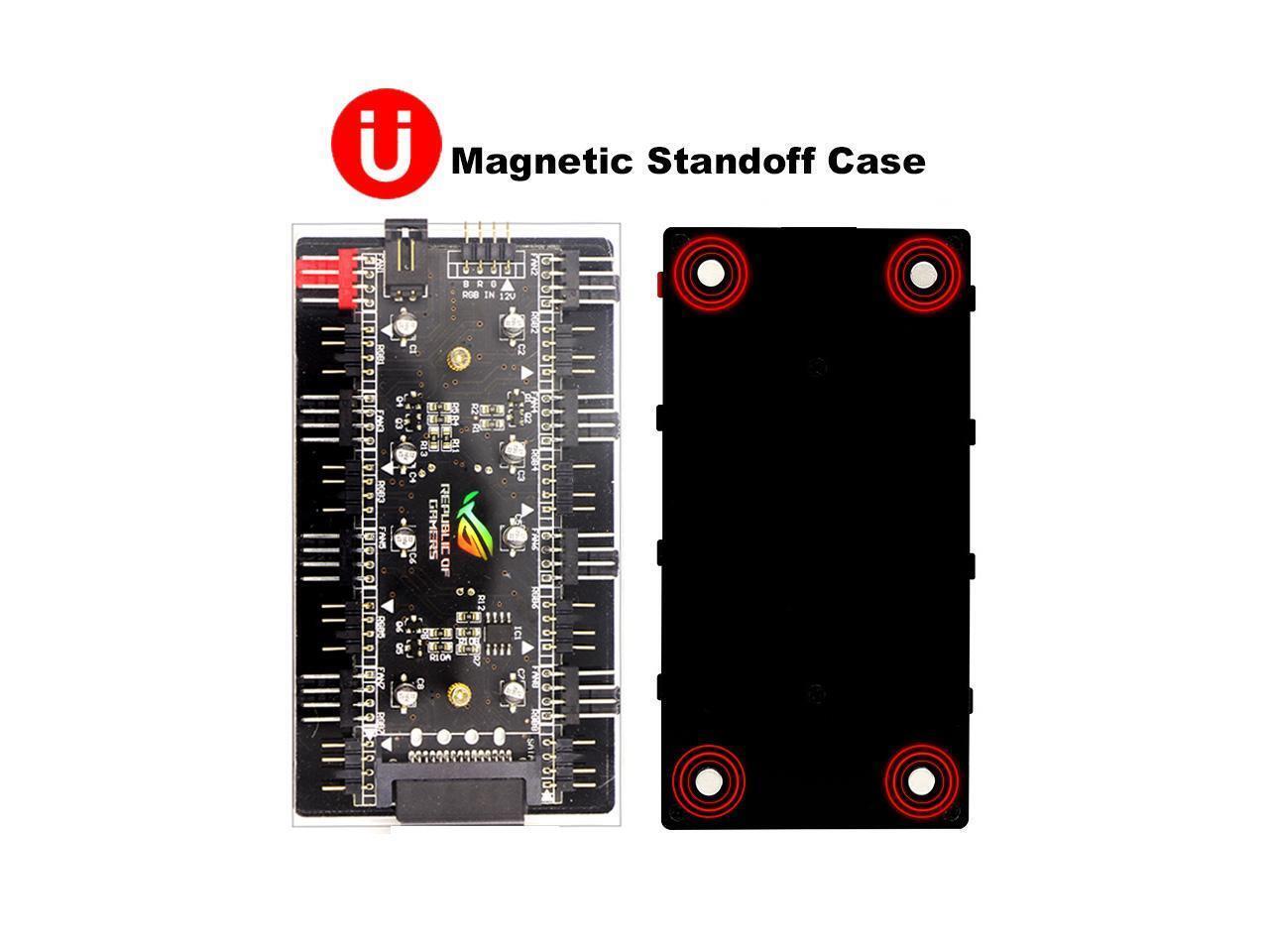 2-in-1 PWM & ARGB 5V Addressable RGB Controller Hub 8 Ports 12V 4Pin Fan & 5V 3Pin AURA Adapter with PMMA Case and Magnetic Standoff for Cooling Radiator & ASUS/MSI LED Strip - SATA Powered