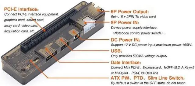Main Parameters: Support for PCI-E X16, the actual X1 mode (according to different notebook configuration can be upgraded to X4 mode)