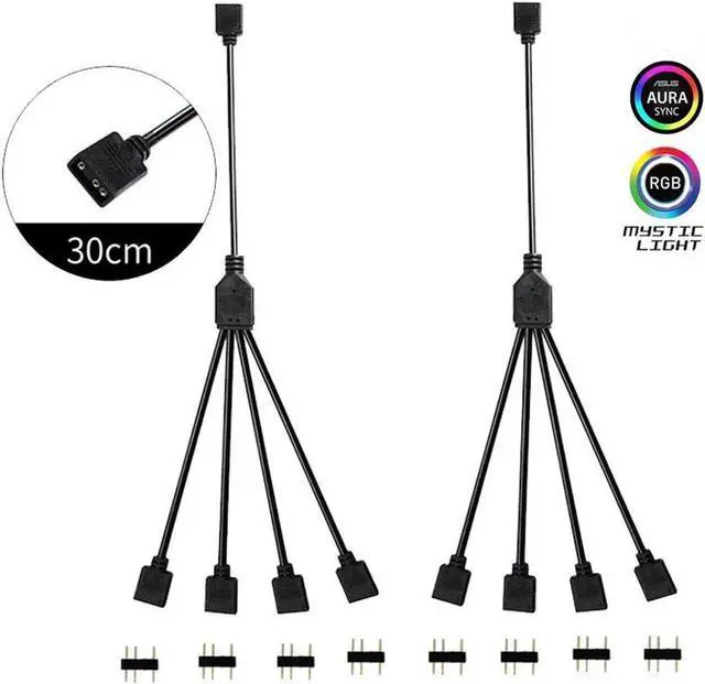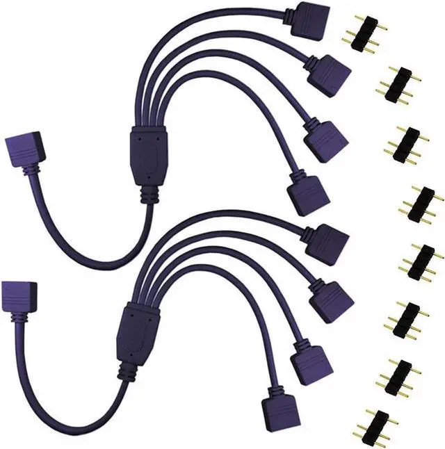 2 Pack 5V 3-Pin RGB 4-Way Female to x Female RBW LED Strip Splitter Cable,4 Port AURA RGB Lighting Hub w/ Gender Changer Adapter - 1 Foot