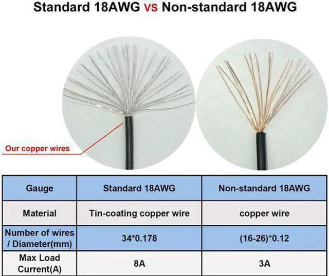 Material selection: standard UL 1007 18AWG tinned copper wire