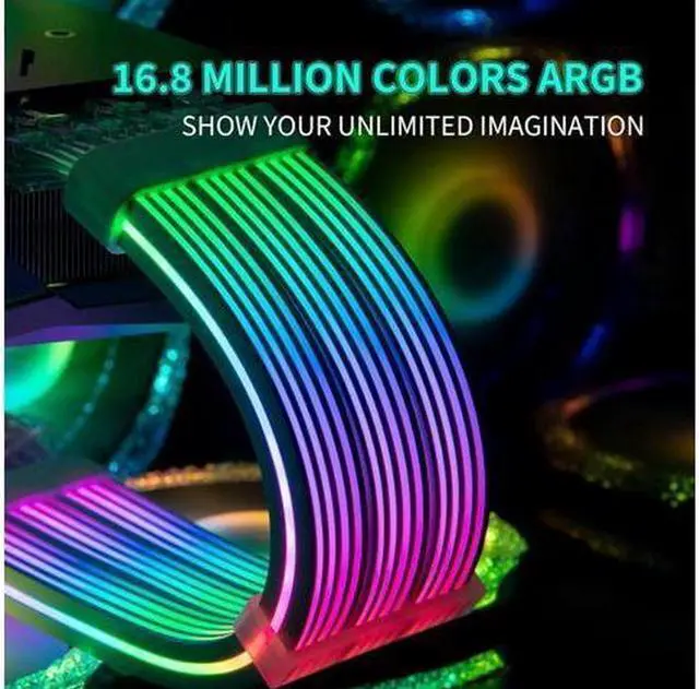 5V ARGB SYNCSupport A SUS, M SI, G igabyte and AS Rock motherboard addressable 5V3pin ARGB, programmable and customizable light effects. Use the corresponding SYNC system to achieve sound and light synchronization. When listening to songs, the rhythmic streamer lights make you dance, and the sound and light effects are more immersive when playing games; a small controller is included with the package, even if the motherboard does not support it. RGB can also control the lighting effect.