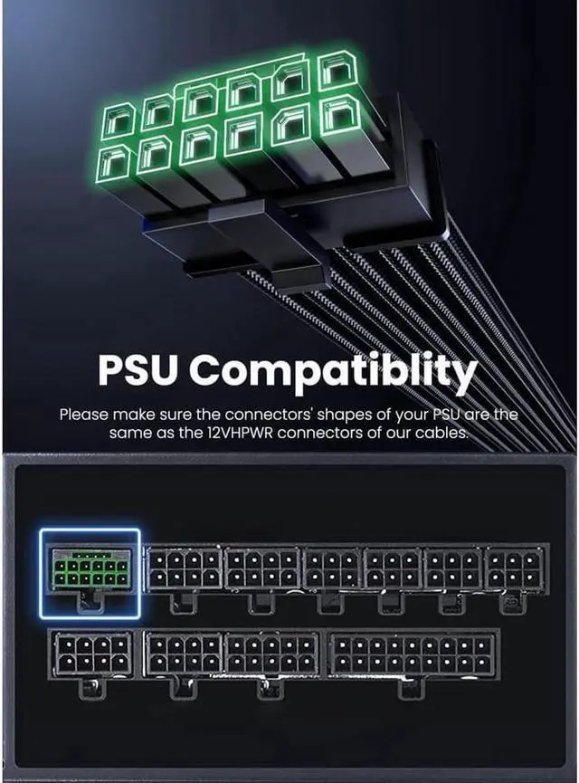 • Notice before shoppingTo order a correct power cable for your PSU and GPU, please make sure your PSU has the 12VHPWR ports (Please refer to the 2nd detail image). And we recommend you had better confirm the RTX 4090/4080/3090 ti/4070 Ti GPU's requirement of the output wattage of PSU.