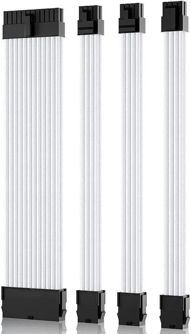 Aomoproing Power Supply Sleeved Cable, Extension PC Kit, 18AWG 24Pin ATX / 8 (4+4) Pin EPS / 8 (6+2) Pin PCI-E Power Supply PSU Cable with Combs, 30CM White