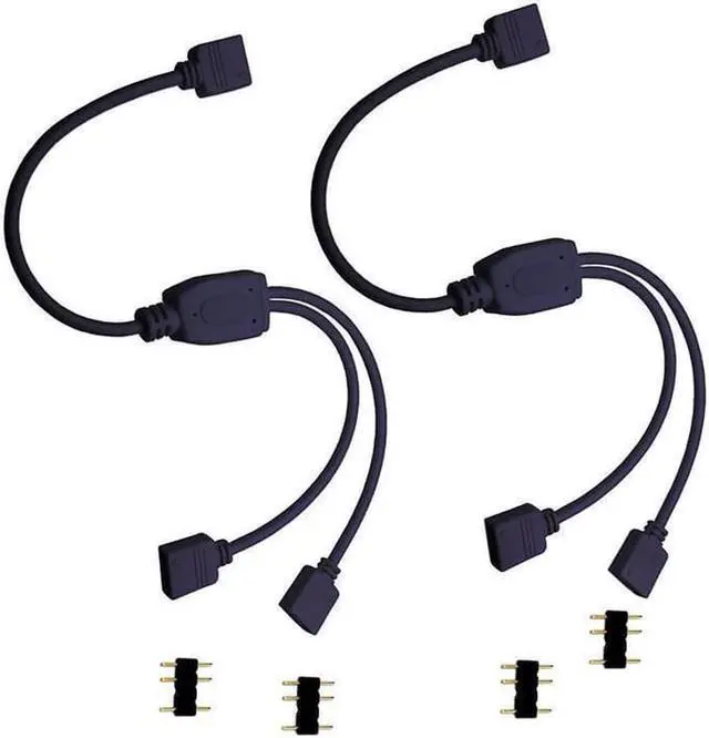 2 Pack 5V 3-Pin RGB 2-Way Female to x Female RBW LED Strip Splitter Cable,2 Port AURA RGB Lighting Hub w/ Gender Changer Adapter - 1 Foot
